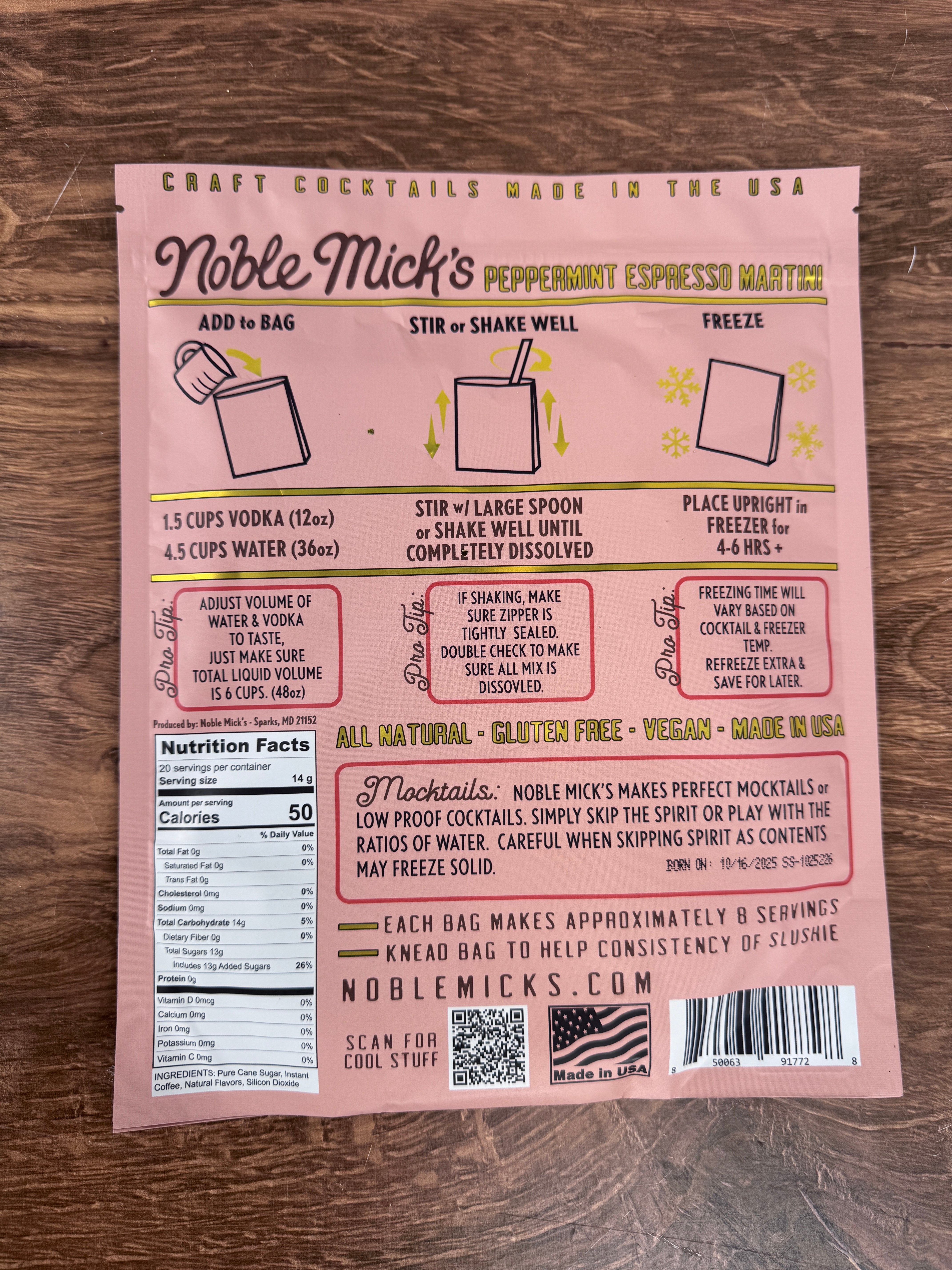 Each 10oz bag makes 8 decadent frozen cocktails. No blender. No mixers. No extra ingredients. Just add 1.5 cups of vodka + 4.5 cups of water, give it a shake, pop it in the freezer, and serve straight from the bag. It doesn’t get easier — or more delicious — than this.