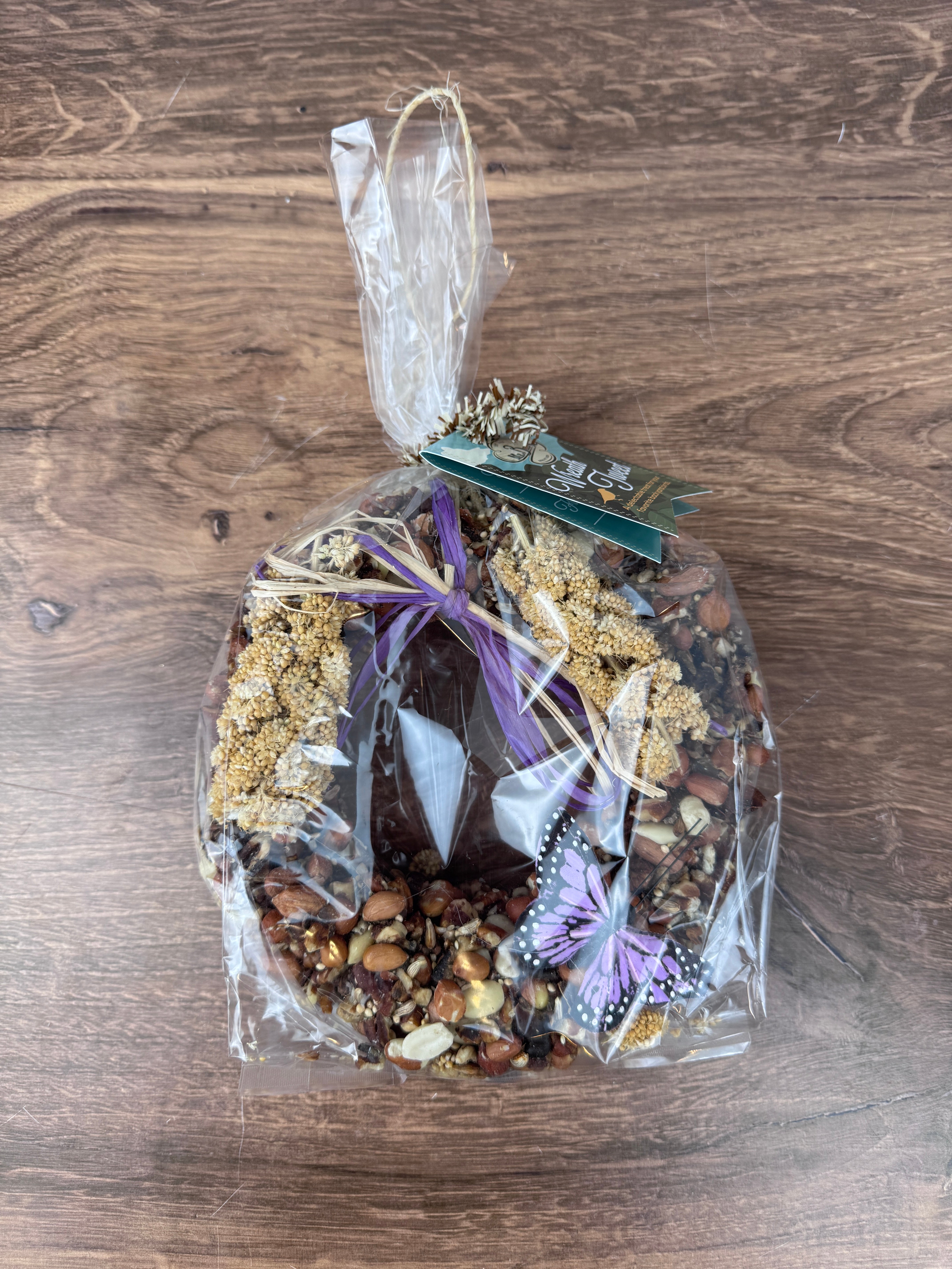 Coated in premium birdseed, peanuts, and tree nuts