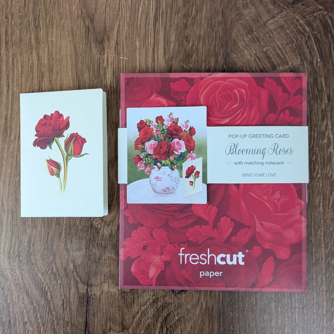 • Intricate 3-D rose bouquet that pops up when opened