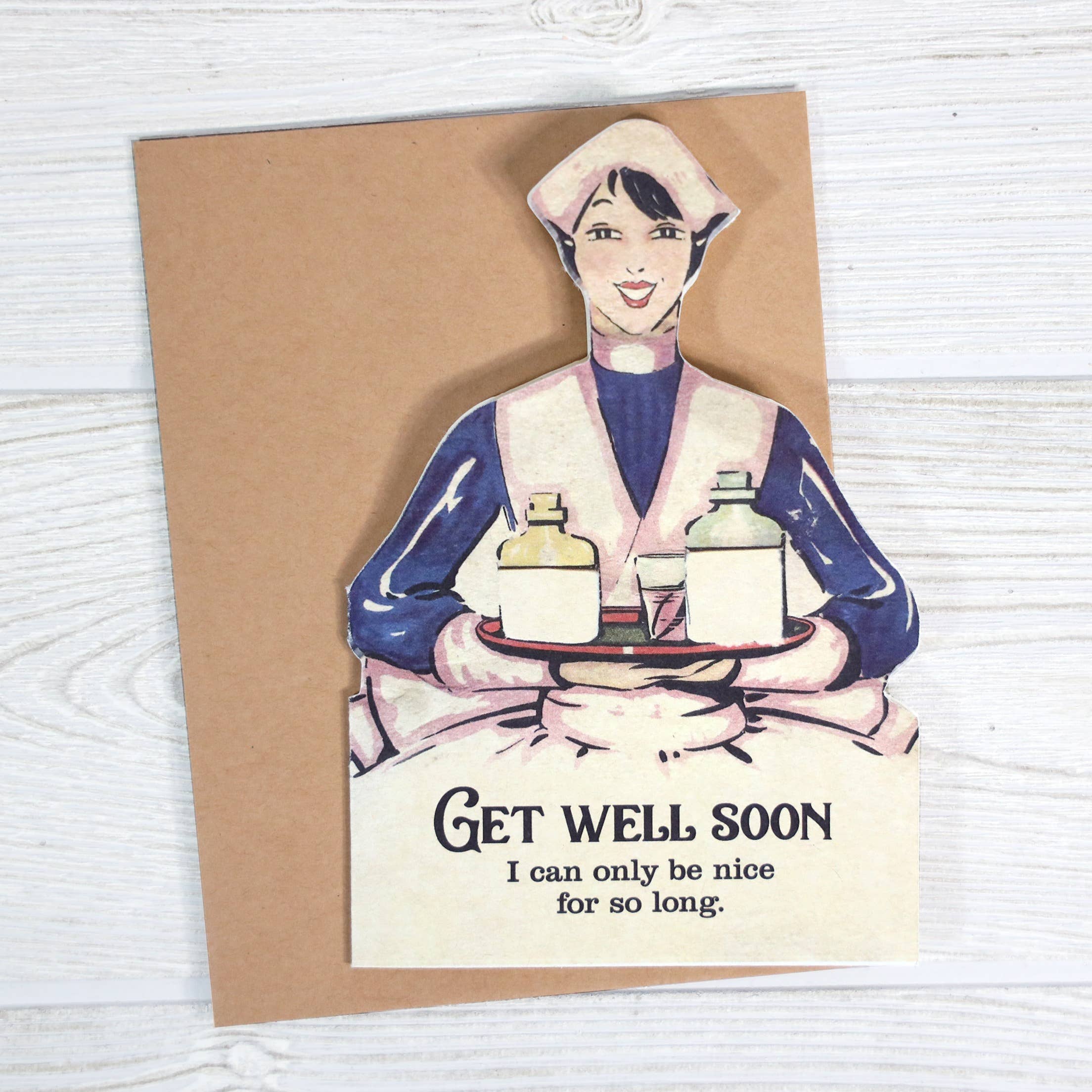 For the friend who knows your love comes with a side of attitude, this card delivers the most honest get-well message ever. “Get well soon, I can only be nice for so long” blends vintage charm with delightfully sarcastic humor — the ideal way to lift their spirits while staying true to your personality.
