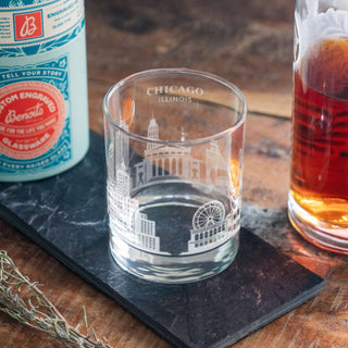 Chicago, Illinois City Skyline Engraved Glass Tumbler