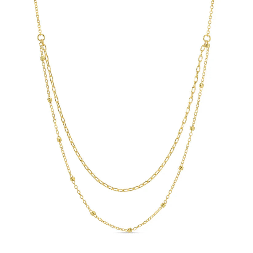 Complete your layering in a flash with our Delicate Double Appeal Necklace! The subtle bead detailing is delicate, but a fresh take on a classic chain style.