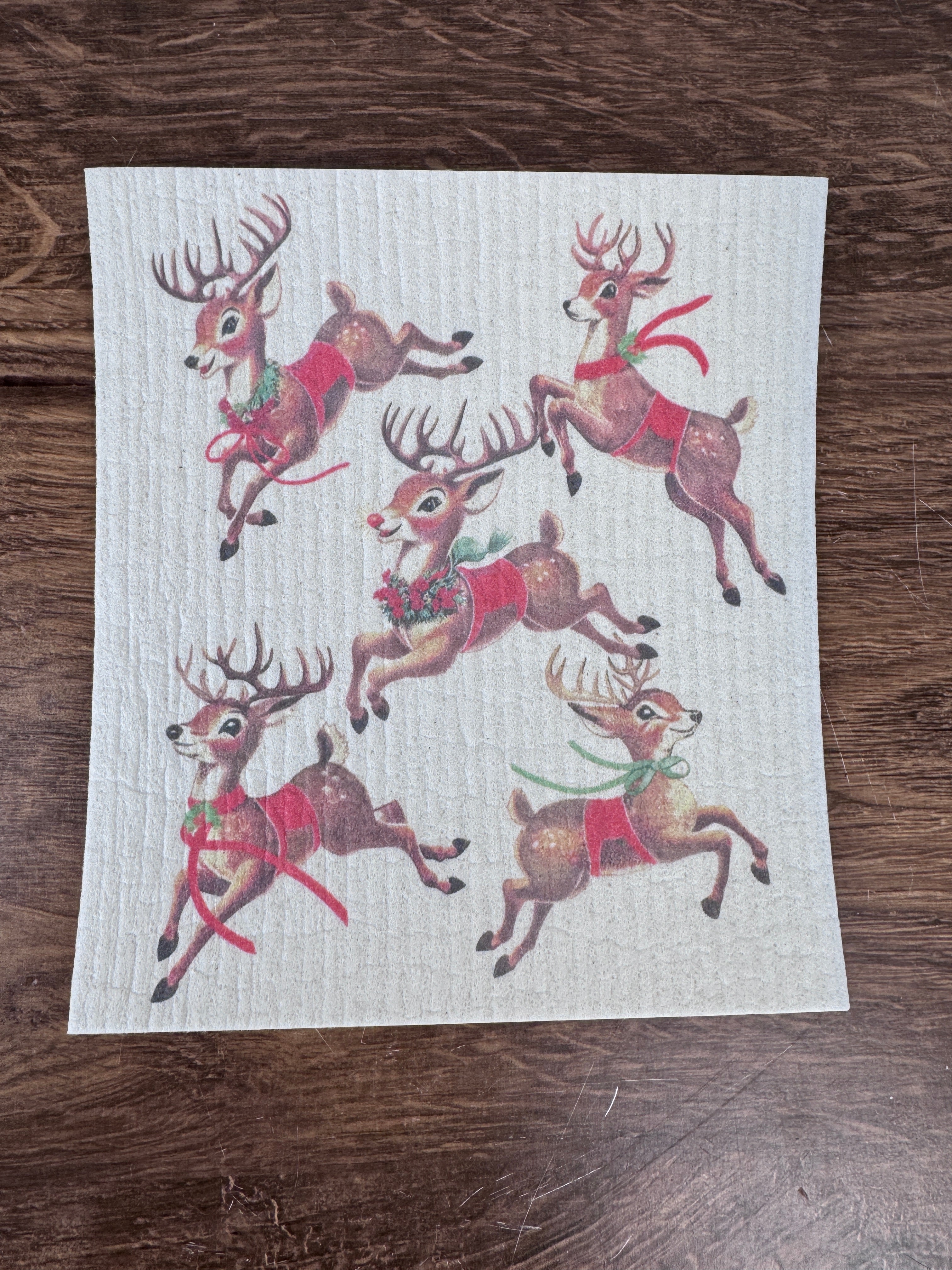 Vintage Reindeers Holiday Sponge Cloth