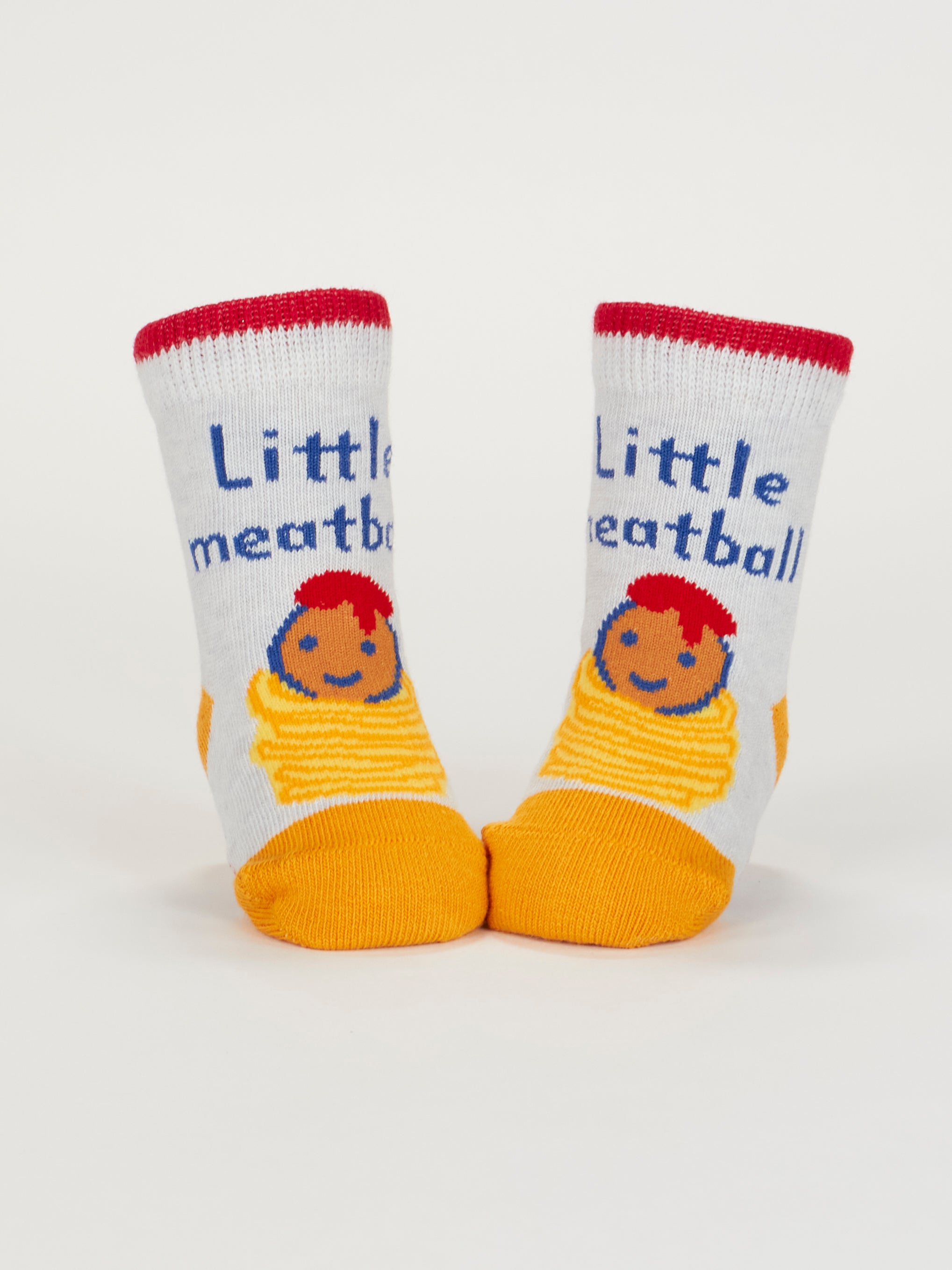 These Meatball/ Heavy Baby Socks socks say exactly what every little one is thinking — tiny, funny, and full of attitude. The perfect baby shower gift for parents with a sense of humor.