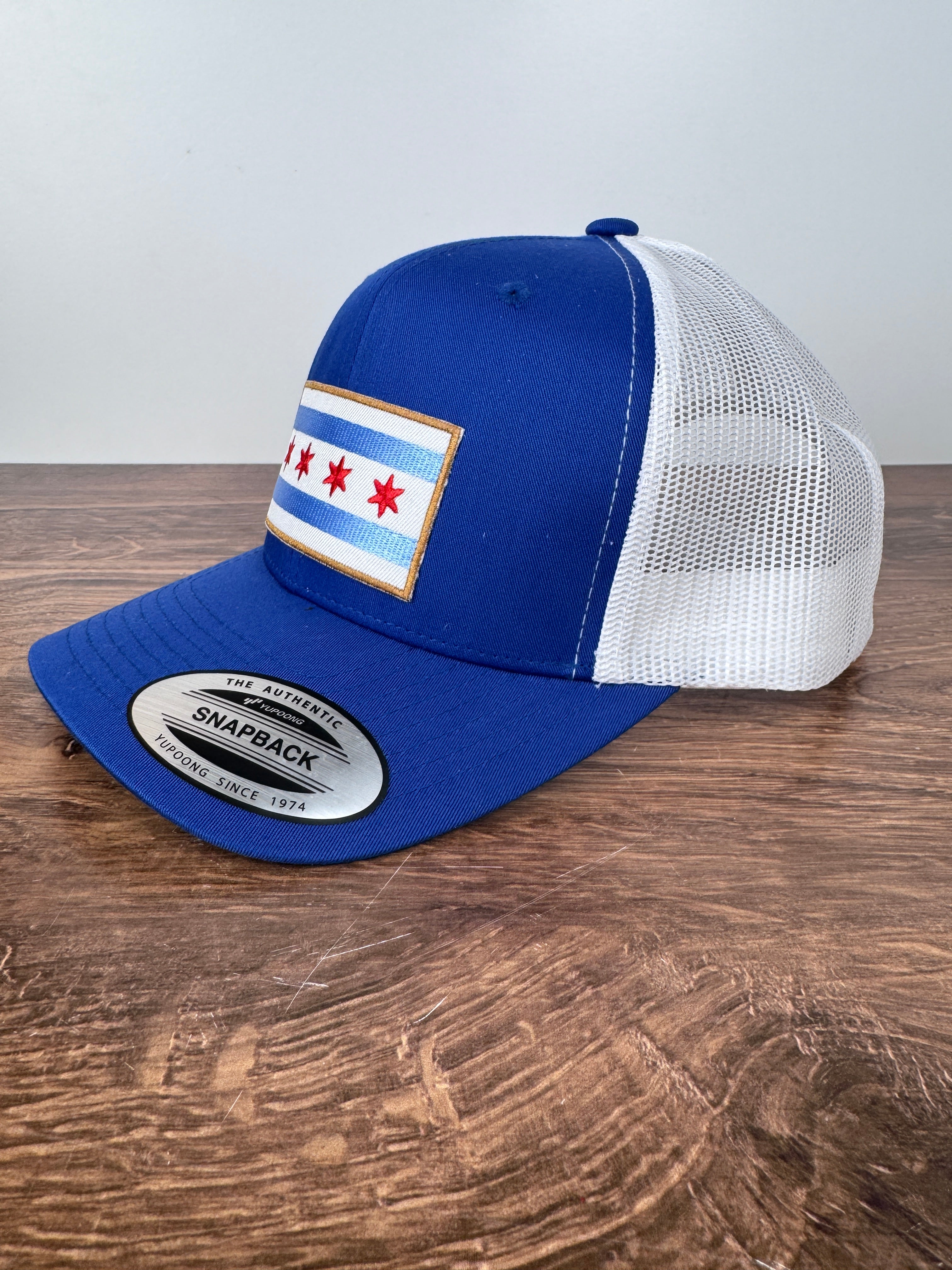 Show off your Chicago pride in laid-back style with this classic trucker hat! Featuring a bold embroidered Chicago flag patch on a soft blue and white design, this cap is perfect for everyday wear — from cheering on your favorite Chicago team to strolling the lakefront. The breathable mesh back keeps you cool, while the adjustable snap closure ensures the perfect fit.