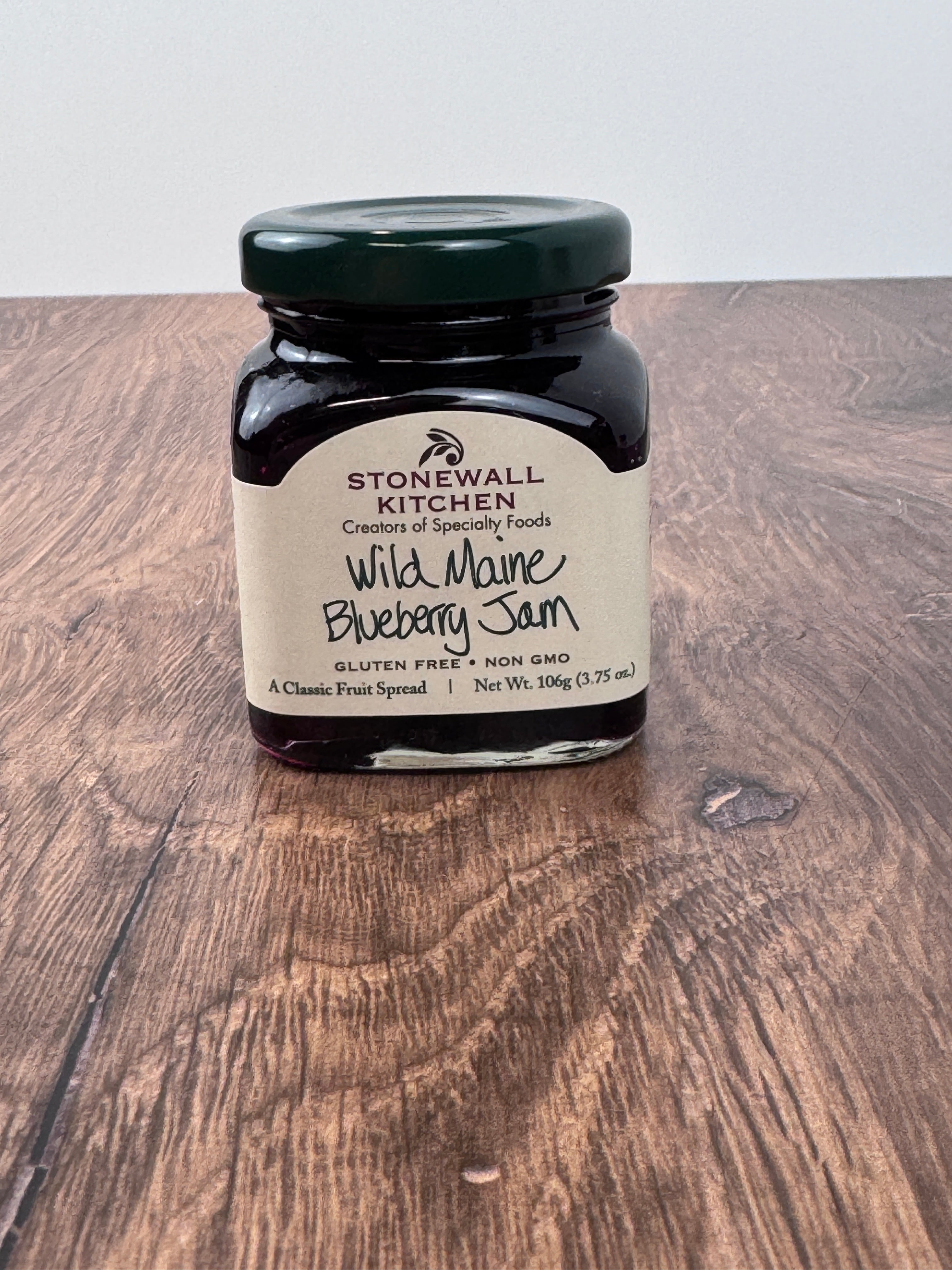 A taste of the Maine coast in every spoonful! 🫐 This Wild Maine Blueberry Gourmet Jam from Stonewall Kitchen is a 12.5 oz jar of rich, fruity perfection made with hand-raked wild blueberries and just the right touch of sweetness.